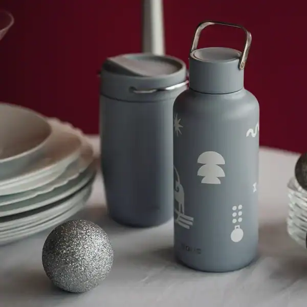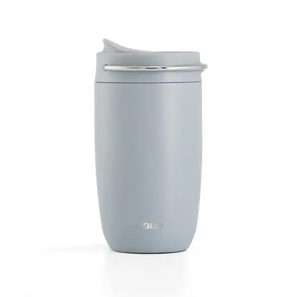 Puodelis: nerūdijantis plienas. Kamštelis: nerūdijantis plienas, tritanas, silikoninis sandarinimo žiedas.